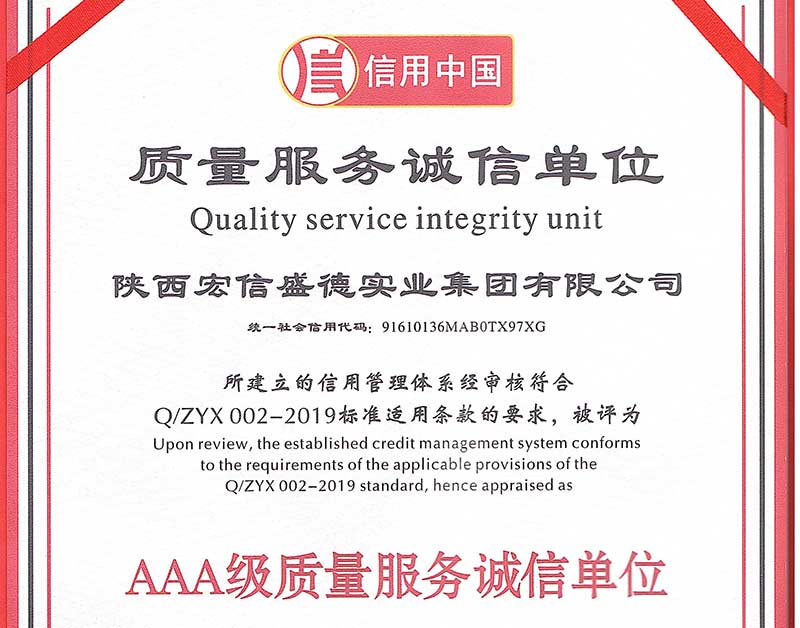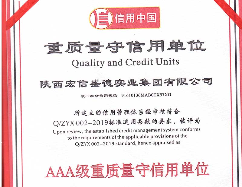 AAA重质量守信用单位